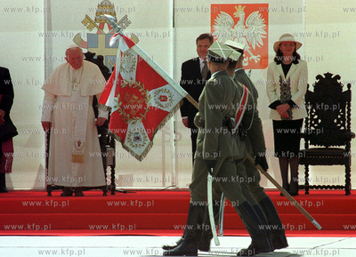 Powitanie Jana Pawla II na lotnisku w Rebiechowie 5.06.1999 fot. LUKASZ GLOWALA / KFP ZAKAZ PUBLIKACJI ZDJECIA W INTERNECIE