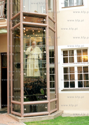Jan Pawel II w czasie pobytu w Kurii Biskupiej w Gdansku korzystal z windy specjalnie dla niego wybudowanej. Na zdjeciu: papiez wlasnie jedzie ta winda. 05.06.1999 Fot. Jan Rutkowski / KFP
