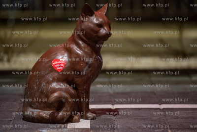 Jedną z pierwszych imprez 33. Finału Wielkiej Orkiestry Świątecznej Pomocy w całej Polsce był rozpoczynający się o godz. 0:01, w niedzielę 26 stycznia 2025 r., Nocny przejazd drezyną po linii PKM na rzecz WOŚP. Rzeźba Kota Ryśka na przstanku Firoga. PKM wylicytowało na rzecz WOŚP miniaturową firurkę kota Ryśka i kalendarz PKM za 528,64 zl. 26.01.2025 fot. Paweł Marcinko / KFP
