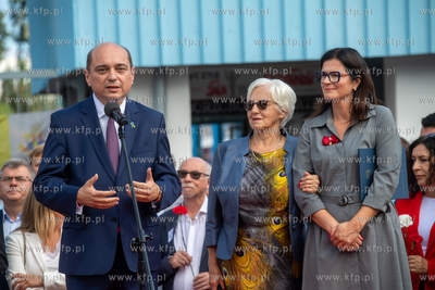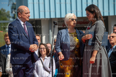 Uroczystości 44. rocznicy podpisania Porozumień Sierpniowych. Nz. Basil Kerski, Danuta Wałęsa, Aleksandra Dulkiewicz. 31.08.2024. Fot. Konrad Kosycarz / KFP