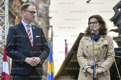 Wielka Parada Miast z okazji rozpoczęcia 44. Międzynarodowego Zjazdu Hanzy. Nz. Aleksandra Dulkiewicz, prezydent Gdańska i przewodniczący Związku Hanzy, burmistrz Lubeki Jan Lindenau