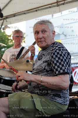 Sopot, ul. Drzymaly. Festyn z okazji 50 lecia powstania kultowego NON STOP w Sopocie, zalozonego przez Franciszka Walickiego w 1961 r. Nz. Andrzej Nebeski (Niebiesko-Czarni). 17.07.2011 fot. Jerzy Bartkowski / KFP