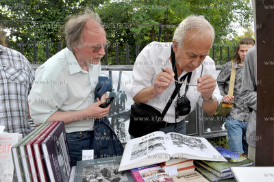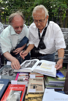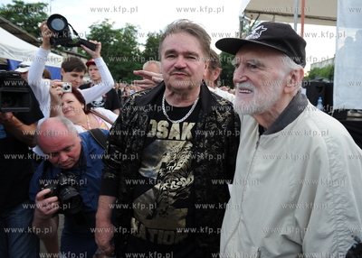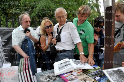 Sopot. Plac w kwartale ulic Drzymaly, Wojka Polskiego, Traugutta. Festyn z okazji 50-lecia Non-Stopu. Nz. Roman Stinzing, wspolautor ksiazki Motlawa Bit i Boguslaw Lechowicz z ABC Rock 17.07.2011 fot. Maciej Kosycarz / KFP
