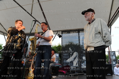 Sopot, ul. Drzymaly. Festyn z okazji 50 lecia powstania kultowego NON STOP w Sopocie, zalozonego przez Franciszka Walickiego w 1961 r. Nz. Franciszek Walicki, Wojciech Korda i Wojciech Gasowski z zespolem Polanie. 17.07.2011 fot. Jerzy Bartkowski / KFP