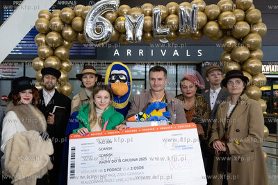 Port Lotniczy Gdańsk im. Lecha Wałęsy. Nz. Powitanie 6 milionowego pasażera. 13.02.2024 / fot. Anna Rezulak / KFP