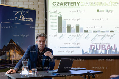 Gdansk, Hotel Puro. Konferencja prasowa podsumowująca wyniki gdańskiego lotniska w 2024 roku. Nz. Tomasz Kloskowski Prezesa Portu Lotniczego Gdańsk 22.01.2025/ fot. Anna Rezulak / KFP