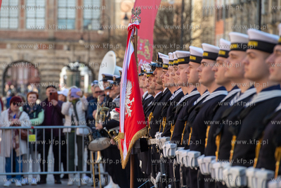 30 marca 1945 roku Gdańsk został przyłączony do kształtowanej na nowo Polski. Kilkadziesiąt godzin wcześniej nad zrujnowanym miastem załopotał polski sztandar. Podniesienie biało-czerwonej flagi na Dworze Artusa 28 marca 1945 roku było symbolicznym momentem przejęcia miasta przez nową administrację. Tego dnia podporucznik Bronisław Wilczewski i chorąży Zbigniew Michel, dwaj 19-letni polscy żołnierze, wspięli się na maszt, by zawiesić polską flagę w miejscu hitlerowskiego sztandaru. W 80. rocznicę tamtych wydarzeń na Długim Targu i ul. Długiej odbyły się uroczystości z udziałem przedstawicieli samorządu, żołnierzy, organizacji kombatanckich i społecznych oraz licznie zebranych mieszkańców. Wydarzenie rozpoczęło się przemarszem Kompanii Reprezentacyjnej Marynarki Wojennej i Orkiestry Reprezentacyjnej Marynarki Wojennej w kierunku Długiego Targu. O godz. 14, przy dźwiękach Mazurka Dąbrowskiego, na Dworze Artusa została podniesiona biało-czerwona flaga. W dalszej części uroczystości znalazły się m.in. pokaz musztry paradnej w wykonaniu Kompanii Reprezentacyjnej Marynarki Wojennej i śpiewanie pieśni patriotycznych. 28.03.2025 / fot. Paweł Marcinko / KFP