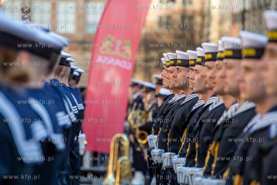 Długi Targ. Uroczystości z okazji 80. rocznicy powrotu Gdańska w granice Polski. Nz. kompania reprezentacyjna Marynarki Wojennej. 28.03.2025 fot. Paweł Marcinko / KFP