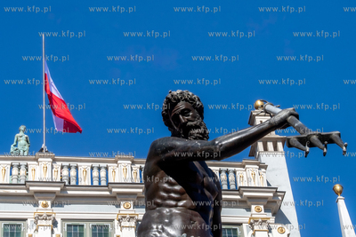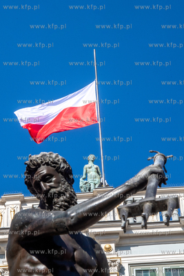 Długi Targ. Uroczystości z okazji 80. rocznicy powrotu Gdańska w granice Polski. Wciągnięcie flagi na naszcie na Dworze Artusa. 28.03.2025 fot. Paweł Marcinko / KFP
