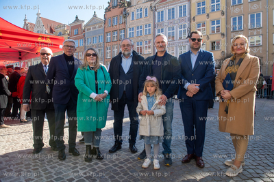 Długi Targ. Uroczystości z okazji 80. rocznicy powrotu Gdańska w granice Polski. Nz. Andzrej Kowalczys, Piotr Adamowicz, Jarosław Wałęsa, Kieturakis Maximilian, Anna Olkowska-Jacyno. 28.03.2025 fot. Paweł Marcinko / KFP