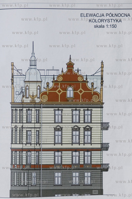 Projekt elewacji kamienicy przy al. Grunwaldzkiej 2 w Gańsku.