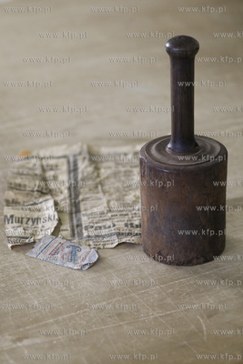 Rzeczy znalezione pod podłogą w czasie remontu kamienicy przy al. Grunwaldzkiej nr 2 świadczące, że budynek nie został wybudowany w 1910 r. jak się oficjalnie uważa, lecz pod koniec XIXw. Nz. młotek ciesielski.