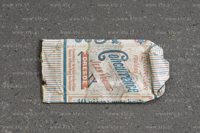 Rzeczy znalezione pod podłogą w czasie remontu kamienicy przy al. Grunwaldzkiej nr 2 świadczące, że budynek nie został wybudowany w 1910 r. jak się oficjalnie uważa, lecz pod koniec XIXw. Nz. paczka po tureckich papierosach.