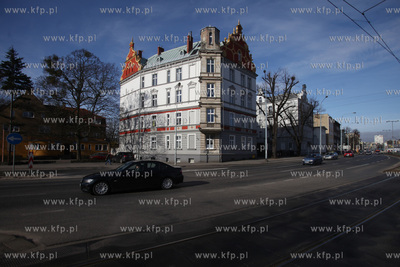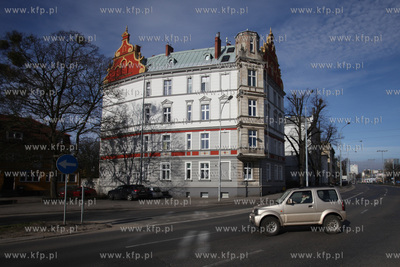 Kamienica przy al. Grunwaldzkiej 2 w Gdańsku bez hełmu na wieżyczce.