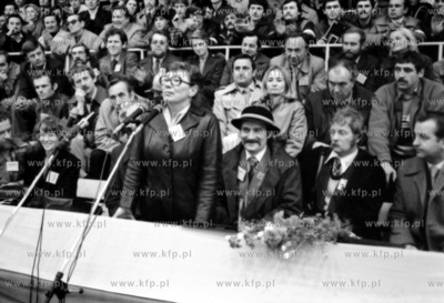 Strajk w Stoczni Gdanskiej im. Lenina Nz. Anna Walentynowicz i Lech Walesa podczas mszy w stoczni 1980 fot. Stanislaw Skladanowski / KFP