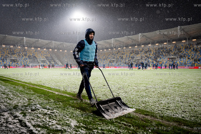 ARKA: Węglarz – Navarro, Stolc, Azaćkyj, Gojny – Gaprindaszwili (90’+2 Kocyła), Rzuchowski, Kocaba, Petrović (61’ Vitalucci), Oliveira (61’ Ratajczyk) – Sobczak (82’ Majchrzak). 14.02.2025 / fot. Mateusz Słodkowski. / trojmiasto.pl / KFP