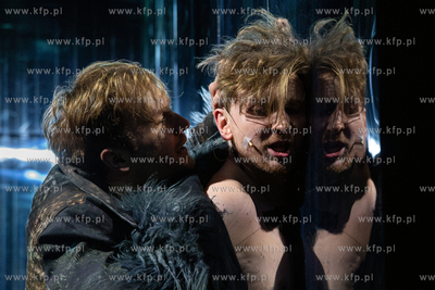 Scenia Kameralna w Sopocie. Próba medialna spektaklu „Brytanik" Jeana Racine'a w reżyserii Grzegorza Wiśniewskiego. Nz. Piotr Biedroń, Robert Ciszewski. 26.02.2025 / fot. Anna Rezulak / KFP