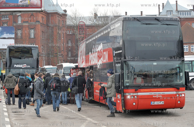 Dworzec autobusowy PKS w Gdansku. Stanowisko autobusow miedzymiastowych PolskiBus. Autobus marki Volvo Vanttol 28.12.2012 Fot. Maciej Kosycarz / KFP