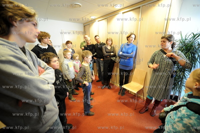 Sopot. Teatr Wybrzeze Scena Kameralna. Drzwi Otwarte - akcja skierowana do mieszkancow Trojmiasta, majaca na celu zachecenie szerokiej publicznosci do czestych wizyt w teatrze. Nz. zwiedzanie centrum multimediow. 27.03.2011 fot. Jerzy Bartkowski / KFP