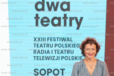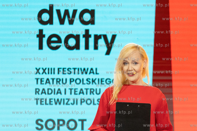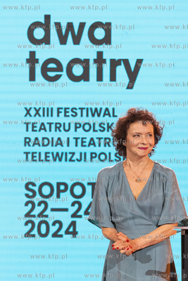 Sopot. Grand Hotel. Gala otwarcia Festiwalu Dwa Teatr i i wręczenie Wielkich Nagród Festiwalu - za całokształt twórczości teatralnej. Nz. Joanna Szczepkowska laureatka Wielkiej Nagroday Festiwalu za całokształt twórczości. 22.06.2024 / fot. Anna Rezulak / KFP