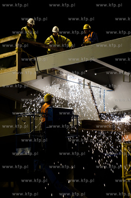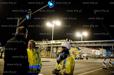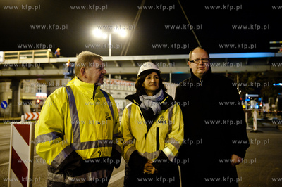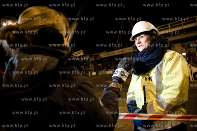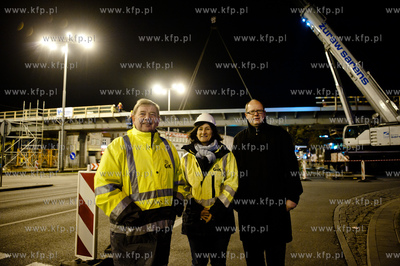 Gdansk - Wrzeszcz. Montaz ostatniego elementu estakady nad ulica Grunwaldzka przy skrzyzowaniu z ulica Slowackiego. Zamontowana zostala sekcja B. Budowany odcinek bedzie czescia trasy Slowackiego. Nz Iwona Zygowska - wiceprezes zarzadu Gdanskich Inwestycji Komunalnych 18.11.2011 fot. Mateusz Ochocki / KFP