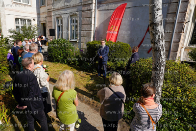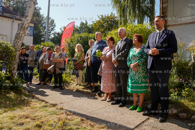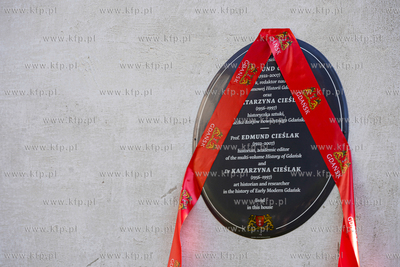 Wrzeszcz, ul. Fiszera 7. Odsłonięcie tablicy poświęconej prof. Edmundowi Cieślakowi i dr Katarzynie Cieślak - historykom upowszechniającym wiedzę o Gdańsku oraz Pomorzu. 19.09.2024 fot. Paweł Marcinko / KFP