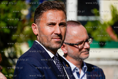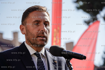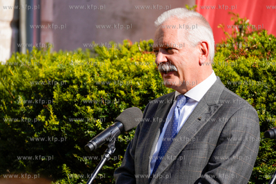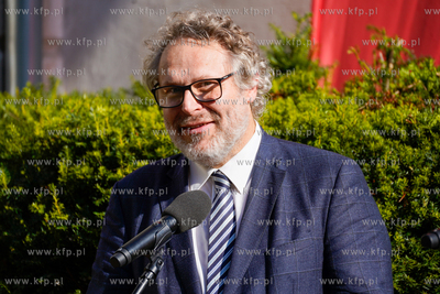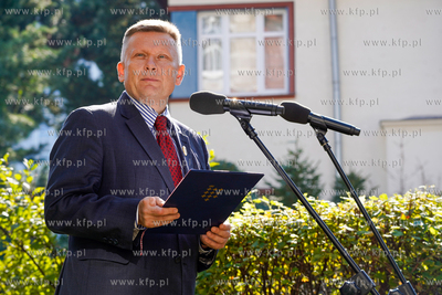 Wrzeszcz, ul. Fiszera 7. Odsłonięcie tablicy poświęconej prof. Edmundowi Cieślakowi i dr Katarzynie Cieślak - historykom upowszechniającym wiedzę o Gdańsku oraz Pomorzu. Nz. Piotr Borawski, zastepca Prezydenta Gdańska. 19.09.2024 fot. Paweł Marcinko / KFP