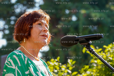 Wrzeszcz, ul. Fiszera 7. Odsłonięcie tablicy poświęconej prof. Edmundowi Cieślakowi i dr Katarzynie Cieślak - historykom upowszechniającym wiedzę o Gdańsku oraz Pomorzu. Nz. Małgorzata Buchholz - Todorowska 19.09.2024 fot. Paweł Marcinko / KFP