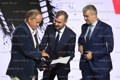 15. jubileuszowy Festiwal Filmowy NNW (Niepokorni Niezłomni Wyklęci) w Gdyni Gala wręczenia nagród i wyróżnień w Teatrze Muzycznym. Nz. NAGRODA FILMOWA DYRKTORA FESTIWALU NNW Godspeed, Los Polacos! dla reż. Adama Nawrota