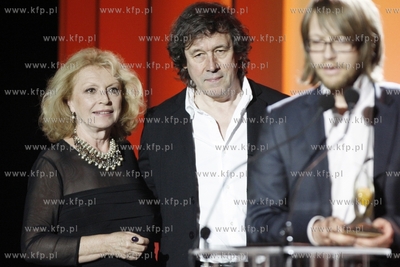 37 Gdynia Film Festival. Uroczysta gala wreczenia nagrod w Teatrze Muzycznym. Nz jurorzy Ewa Wisniewska i Stephen Rea wreczaja nagrode specjalna jury za odwagę formy i treści, a także za szczególne i unikatowe walory artystyczne dla filmuDroga na drugą stronę w reżyserii Anci Damian. 12.05.2012 fot. Krzysztof Mystkowski / KFP