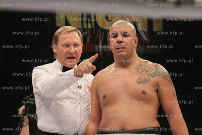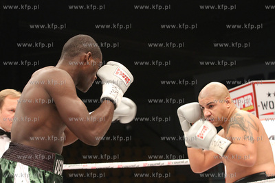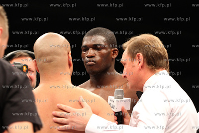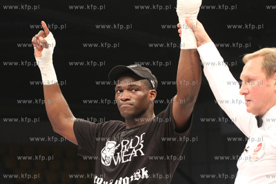 Gala Wojak Boxing Night w Gdyni. Nz. Walka wygrana przed czasem pomiedzy Izu Ugonoh a Niemcem z tureckimi korzeniami Fatiha Ceyhana.