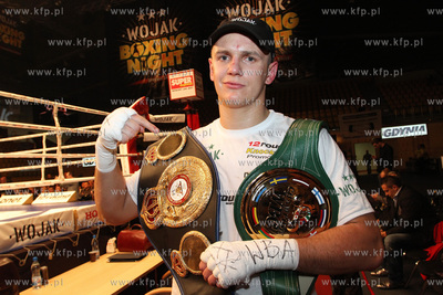 Gala Wojak Boxing Night w Gdyni. W walce o pasy federacji WBC Baltic i WBA International Andrzej Wawrzyk ciezko znokaltowal Nelsona Dario Domingueza z Argentyny. Nz. Andrzej Wawrzyk.