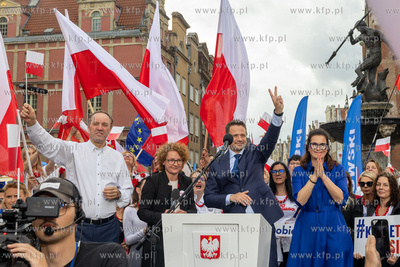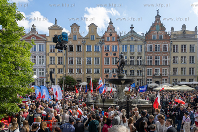 Chojnice, Gdańsk, Elbląg, Ostróda, Ciechanów – tak wygląda trasa Rafała Trzaskowskiego w ostatnim dniu kampanii prezydenckiej. W ostatnim z wymienionych miast kandydat na prezydenta RP ma pojawić się po godz. 23. O północy rozpocznie się cisza wyborcza. Tempo do końca zawrotne. Spotkanie na Długim Targu w Gdańsku miało się rozpocząć o godz. 17, jednak trudno było nadążyć – zaczęło się z półgodzinnym opóźnieniem. Kandydata Koalicji Obywatelskiej wspierali ze sceny przy Neptunie prezydent miasta Aleksandra Dulkiewicz, marszałek pomorski Mieczysław Struk, prezydent Sopotu Magdalena Czarzyńska-Jachim, małżonka Małgorzata Trzaskowska, minister Barbara Nowacka i posłanka Agnieszka Pomaska. Na Długim Targu zebrało się kilka tysięcy osób. Nad ich głowami falował las biało-czerwonych flag. Kiedy przemawiał kandydat, przed sceną co chwilę rozlegało się gromkie „Polska cała na Rafała! – Dzisiaj musimy być razem i dzisiaj znowu musimy się policzyć, po to, żeby Polska znowu mogła być wolna, odważna i solidarna. I właśnie dlatego musimy iść do tych wyborów (...) Do was się zwracam, strażnicy godności, strażnicy odwagi, strażnicy solidarności. Zwracam się, do was, do tych, którzy nigdy nie odwracają wzroku, wołam również do tych, którzy nigdy nie tracą nadziei. Właśnie tutaj, w Gdańsku, w czasach solidarności narodziła się nadzieja, i ta nadzieja również dzisiaj będzie nas prowadzić ku przyszłości, w której wszyscy będziemy mogli realizować swoje marzenia i aspiracje. I doprowadzimy do tego, że w tę wielką podróż ku przyszłości zabiorą się absolutnie wszyscy, również ci, którym do tej pory się nie udawało. Bo Gdańsk daje nadzieję. Dziś nie pytam was o to, czy warto, tylko pytam was, czy jesteście gotowi powiedzieć nie nienawiści, czy jesteście gotowi pójść razem ku przyszłości, czy jesteście znowu gotowi do tego, żeby zrobić krok do przodu, tutaj w Gdańsku i w całej Polsce. Bardzo was proszę, pamiętajcie, że do urn pójdziecie nie tylko z kartką, ale pójdziecie z pamięcią, pójdziecie z dumą i odpowiedzialnością – przekonywał wyborców Rafał Trzaskowski. 30.05.2025 / fot. Anna Rezulak / KFP