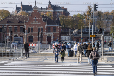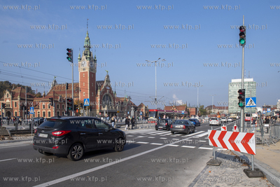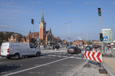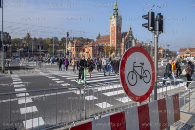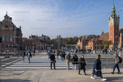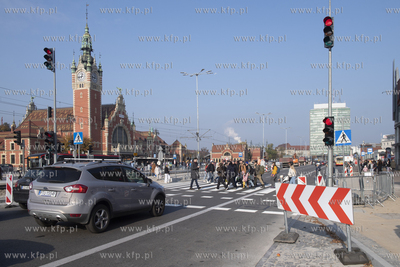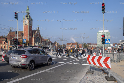 Wstępne otwarcie naziemnego przejścia dla pieszych na Podwalu Grodzkim na wysokości Dworca PKP w Gdańsku. 26.10.2024 fot. Paweł Marcinko / KFP