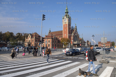 W sobotę zostało otwarte nowe przejście naziemne dla pieszych na Podwalu Grodzkim przy dworcu PKP Gdańsk Główny. Przejazd rowerowy jest jeszcze w budowie. Udostępnienie „zebry” nie oznacza, że roboty w tym miejscu dobiegły końca. W najbliższym czasie wykonawca przystąpi do prac związanych z przebudową peronów tramwajowych i montażem wiat przystankowych. Wejście na przystanki z tunelu tymczasowo pozostaje zamknięte. Tramwaje zatrzymują się na nowo wybudowanych peronach sąsiadujących z naziemnym przejściem dla pieszych. Biletomaty na peronach tramwajowych nr 133 i 134 nie działają. Do dyspozycji podróżnych są automaty biletowe na przystankach autobusowych w kierunku Wałowej i Pruszcza Gdańskiego. Wraz z przebudową przystanków zdemontowane zostaną dotychczasowe elektroniczne tablice Systemu Dynamicznej Informacji Pasażerskiej. Po zakończeniu prac na węźle Dworzec Główny nowe wyświetlacze znajdą się na wszystkich przystankach tramwajowych i autobusowych. Na wydłużonych peronach tramwajowych zamontowane zostaną po dwie tablice w każdym kierunku jazdy. Do dyspozycji pasażerów będą też tak jak do tej pory cztery automaty biletowe. 26.10.2024 / fot. Paweł Marcinko / KFP