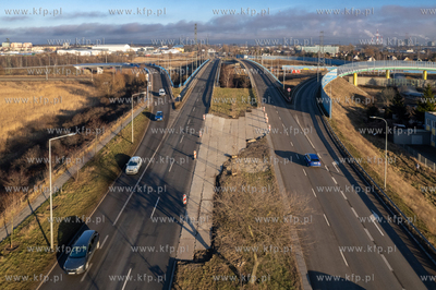 Estakada na ul. Elbląskiej nad torami kolejowymi i Trasą Sucharskiego przygotowana zmiany organizacji ruchu w związku z planowanym remontem. 19.01.2025 fot. Paweł Marcinko / KFP
