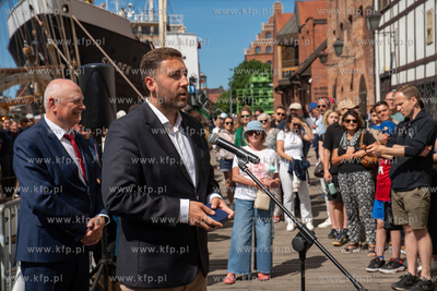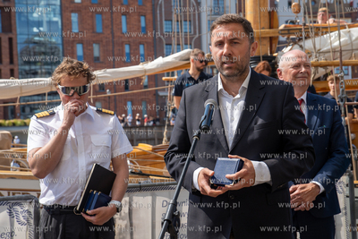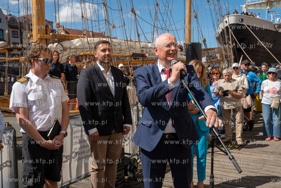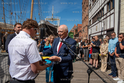 Żaglowiec Generał Zaruski wypłyną, w 101-dniową wyprawę na Spitsbergen. Rejs ten upamiętnia 50. rocznicę historycznej podróży z 1975 roku, kiedy to pod dowództwem kapitana Andrzeja Rościszewskiego pierwszy polski jacht dotarł do stacji polarnej w Hornsundzie. Piotr Borawski, wiceprezydent Gdańska 30.06.2025 fot. Paweł Marcinko / KFP