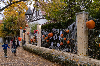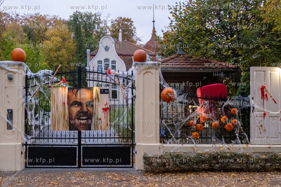 Gdańsk Wrzeszcz, ul. Jaśkowa Dolina. Nz. Halloweenowe dekoracje przy willi Kirsch. 22.10.2024 / fot. Anna Rezulak / KFP