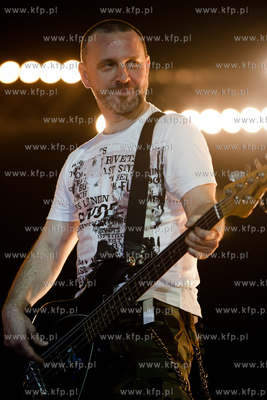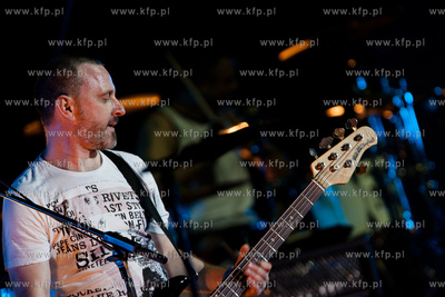 Gdansk. Ergo Arena. Koncert jednego z najwazniejszych zespolow w historii polskiego rocka - Illusion. Byl to jeden z trzech koncertow, podczas ktorych powstaje material na plyte DVD. Nz basista zespolu Jaroslaw Smigiel 05.11.2011 fot. Mateusz Ochocki / KFP