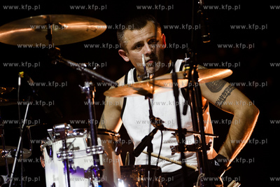 Gdansk. Ergo Arena. Koncert jednego z najwazniejszych zespolow w historii polskiego rocka - Illusion. Byl to jeden z trzech koncertow, podczas ktorych powstaje material na plyte DVD. Nz perkusista zespolu Pawel Herbasch 05.11.2011 fot. Mateusz Ochocki / KFP
