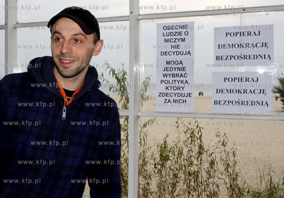 Sopot. Konferencja prasowa Jakuba Swiderskiego kandydata na prezydenta Sopot. Planowana przez kandydata konferencja na najwyzszym poziomie latarni morskiej nie doszla do skutku, gdyz kandydat nie wystapil do wlasciciela obiektu Wojewodzkiego Zespolu Reumatologicznego o zgode. Konferencja odbyla sie na Skwerze Kuracyjnym. Nz. Jakub Swiderski. 14.10.2010 fot. Jerzy Bartkowski / KFP