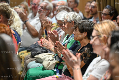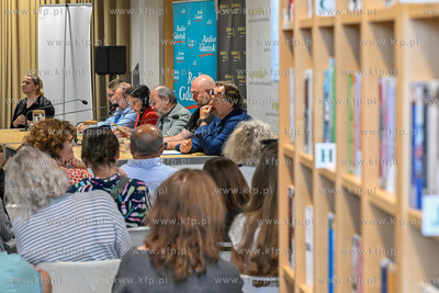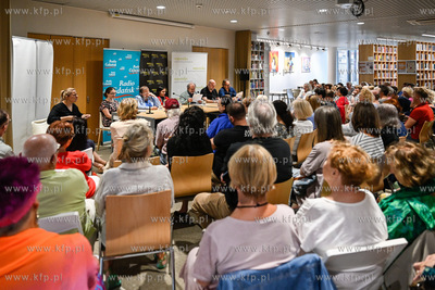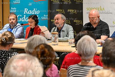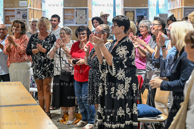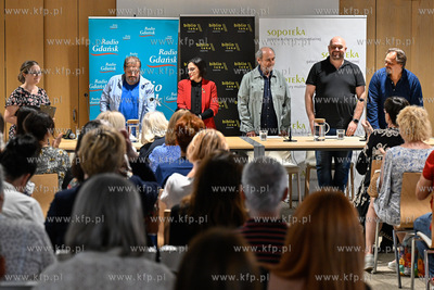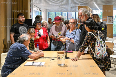 Miejska Biblioteka Publiczna w Sopocie. Filia Sopoteka. Spotkanie z cyklu Poczytaj Mi. Gosciem spotkania był Jan Peszek, który wspólnie z bibliotekarzami biblioteki sopockiej oraz wyłonionym podczas castingu czytelnikiem odczytał fragmenty Don Kichota z La Manchy Miguela de Cervantesa. Prowadzenie PIotr Łukawski. 09.08.2024 / fot. Jerzy Bartkowski / KFP