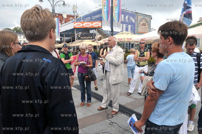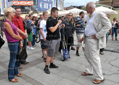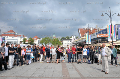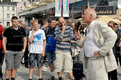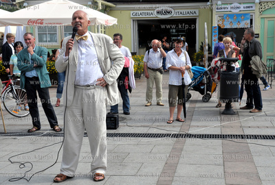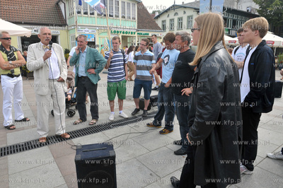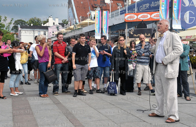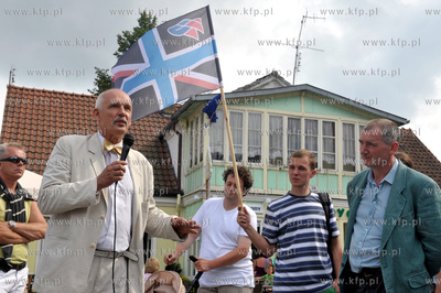 Wakacyjny wiec przedwyborczy Janusza Korwina Mikke prezesa Unii Polityki Realnej - Wolnosc i Praworzadnosc przed lodziarnia Milano na ul. Bohaterow Monte Cassino w Sopocie. 14.07.2011 Fot. Maciej Kosycarz / KFP