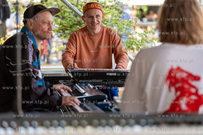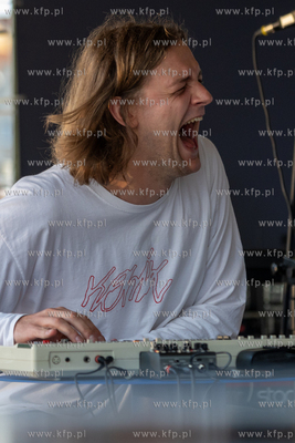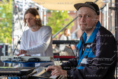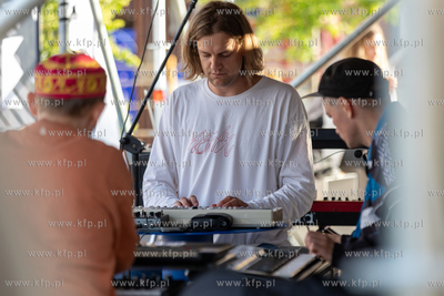 Gdańsk, Ołowianka. Jazz na Wyspie Nz. Koncert zespołu KI KI KI w składzie: Marcel Baliński - syntezator, Grzegorz Tarwid - syntezator, Piotr Zabrodzki - syntezator 30.07.2025 / fot. Anna Rezulak / KFP