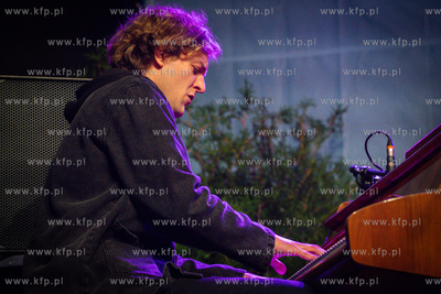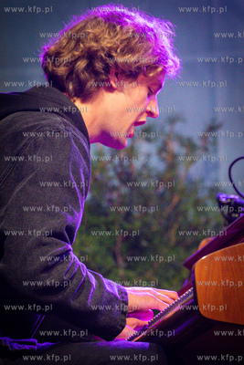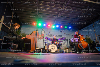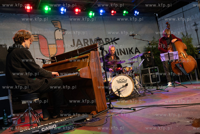 Gdańsk, Ołowianka. Jazz na Wyspie 2023. Nz. Koncert Marcel Baliński Trio w składzie: Marcel Baliński - piano, klawisze; Franciszek Pospieszalski - kontrabas; Krzysztof Szmańda - perkusja. 26.07.2023 / fot. Anna Rezulak / KFP