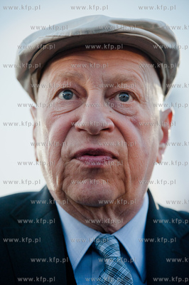 Happening pt "Aktorzy Przyjechali" z okazji wmurowania kamienia wegielnego pod budowe Teatru Szekspirowskiego w Gdansku. Na starowce najznamienitsi polscy aktorzy odgrywali sztuki Szekspira w rezyserii Andrzeja Wajdy. Nz Jerzy Stuhr. 14.09.2009 fot. Wojtek Jakubowski /KFP
