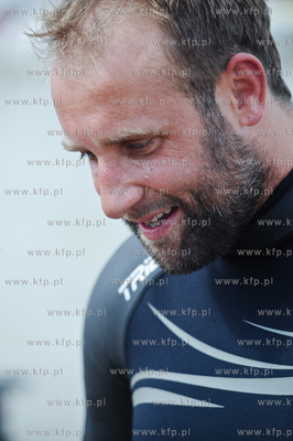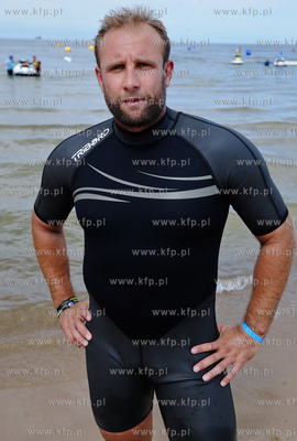 Plaza w Gdansku - Brzeznie . Jetskirace - Mistrzostwa Polski Dziennikarzy, Puchar Polski Celebrytow oraz Sejm na Fali na Skuterach Wodnych. W imprezie pod patronatem Polskiego Komitetu Olimpijskiego biora udzial dziennikarze, znani sportowcy i artysci oraz parlamentarzysci. Startujący celebryci wspieraja Fundacje Zyc z POMPA, sfinansuja zakup dwoch pomp do zywienia pozajelitowego. Nz Artur Siodmiak ''Krol Artur'' 16.07.2011 fot. Mateusz Ochocki / KFP