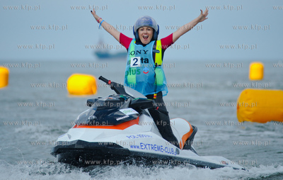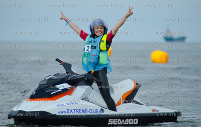 Plaza w Gdansku - Brzeznie . Jetskirace - Mistrzostwa Polski Dziennikarzy, Puchar Polski Celebrytow oraz Sejm na Fali na Skuterach Wodnych. W imprezie pod patronatem Polskiego Komitetu Olimpijskiego biora udzial dziennikarze, znani sportowcy i artysci oraz parlamentarzysci. Startujący celebryci wspieraja Fundacje Zyc z POMPA, sfinansuja zakup dwoch pomp do zywienia pozajelitowego. Nz Aleksandra Kobielak 16.07.2011 fot. Mateusz Ochocki / KFP