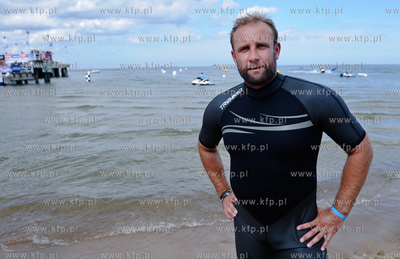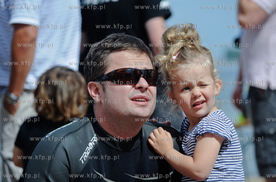 Plaza w Gdansku - Brzeznie . Jetskirace - Mistrzostwa Polski Dziennikarzy, Puchar Polski Celebrytow oraz Sejm na Fali na Skuterach Wodnych. W imprezie pod patronatem Polskiego Komitetu Olimpijskiego biora udzial dziennikarze, znani sportowcy i artysci oraz parlamentarzysci. Startujący celebryci wspieraja Fundacje Zyc z POMPA, sfinansuja zakup dwoch pomp do zywienia pozajelitowego. Nz Pawel Poncyliusz 16.07.2011 fot. Mateusz Ochocki / KFP