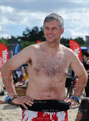 Plaza w Gdansku - Brzeznie . Jetskirace - Mistrzostwa Polski Dziennikarzy, Puchar Polski Celebrytow oraz Sejm na Fali na Skuterach Wodnych. W imprezie pod patronatem Polskiego Komitetu Olimpijskiego biora udzial dziennikarze, znani sportowcy i artysci oraz parlamentarzysci. Startujący celebryci wspieraja Fundacje Zyc z POMPA, sfinansuja zakup dwoch pomp do zywienia pozajelitowego. Nz Adam Hofman 16.07.2011 fot. Mateusz Ochocki / KFP